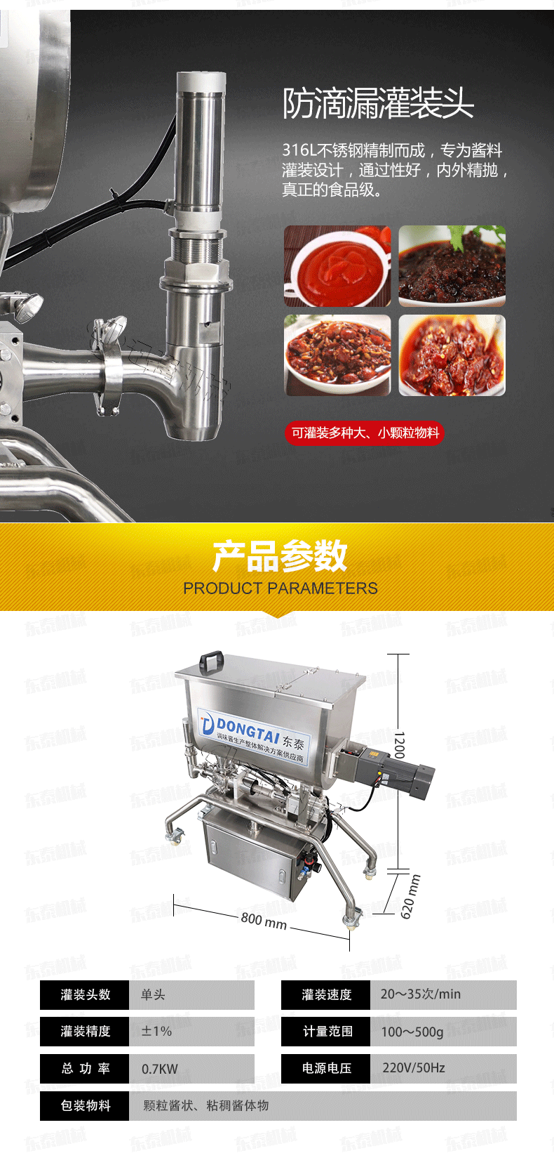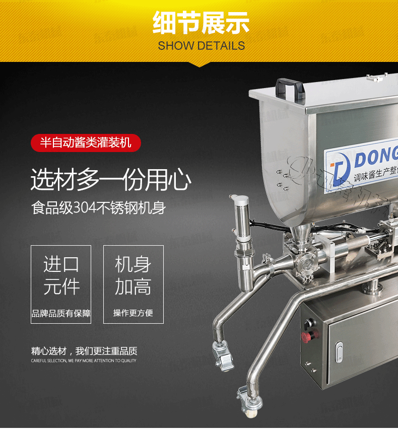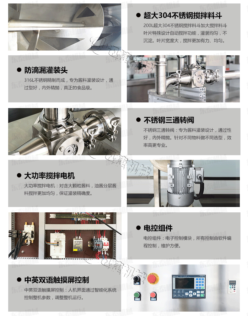 2、 醬料灌裝機設備全不銹鋼制作,衛生、安全;