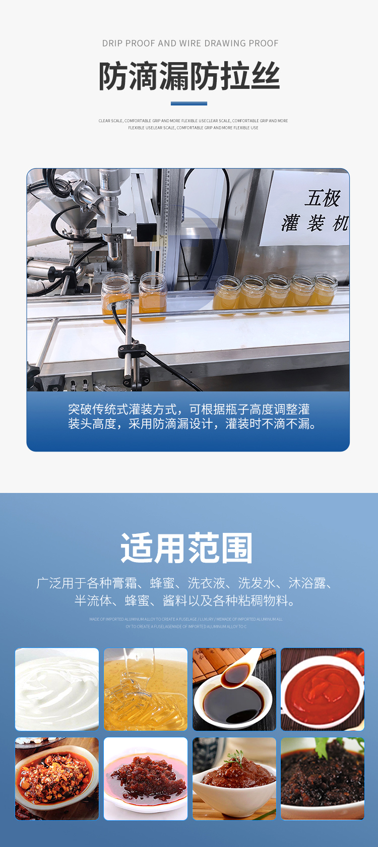 半流體、蜂蜜、醬料以及各種粘稠物料。