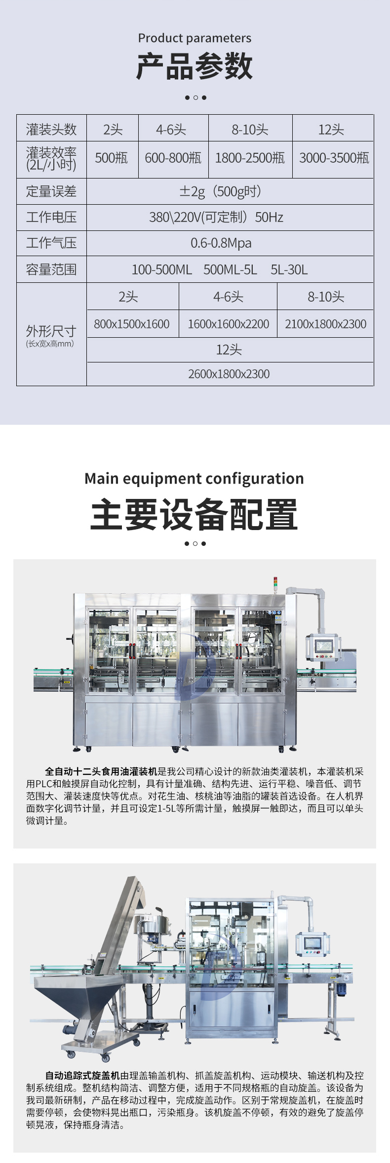 全自動食用油灌裝機需要根據不同容器的規格和油的流量進行參數設置。首先,我們需要設置油的量,可以是固定的或根據容器容量進行自動調整。接著,需要設置灌裝速度和灌裝口的高度等參數。在這個過程中,需要通過灌裝頭上的傳感器來檢測是否有油流出。如果有油流出的話,就需要回收和再利用。